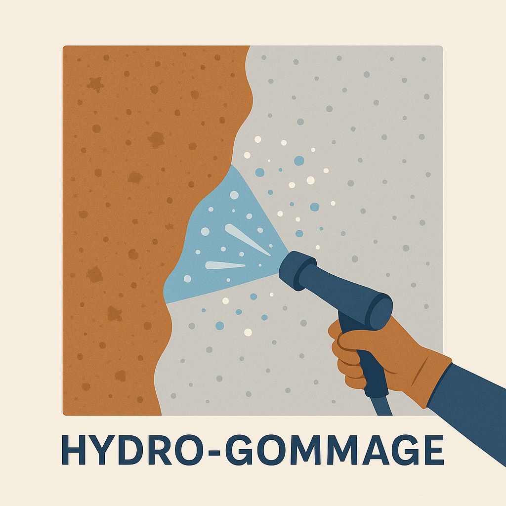 L’hydro-gommage est une technique douce de nettoyage qui combine la projection d’un abrasif à basse pression avec de l’eau. Ce procédé permet d’éliminer les salissures, peintures, graffitis, rouilles ou résidus divers sans altérer le support. Adapté aux surfaces fragiles comme la pierre, le bois ou les monuments historiques, l’hydro-gommage est respectueux des matériaux et de l’environnement, sans produits chimiques.